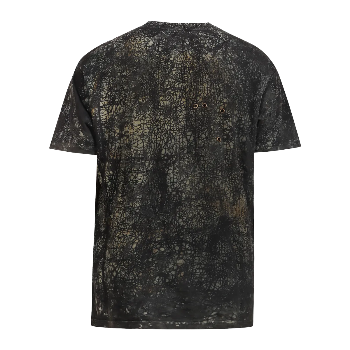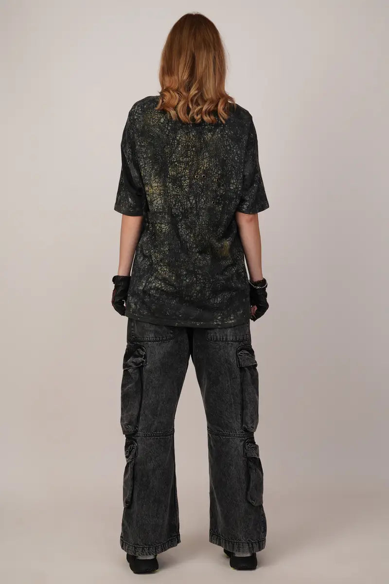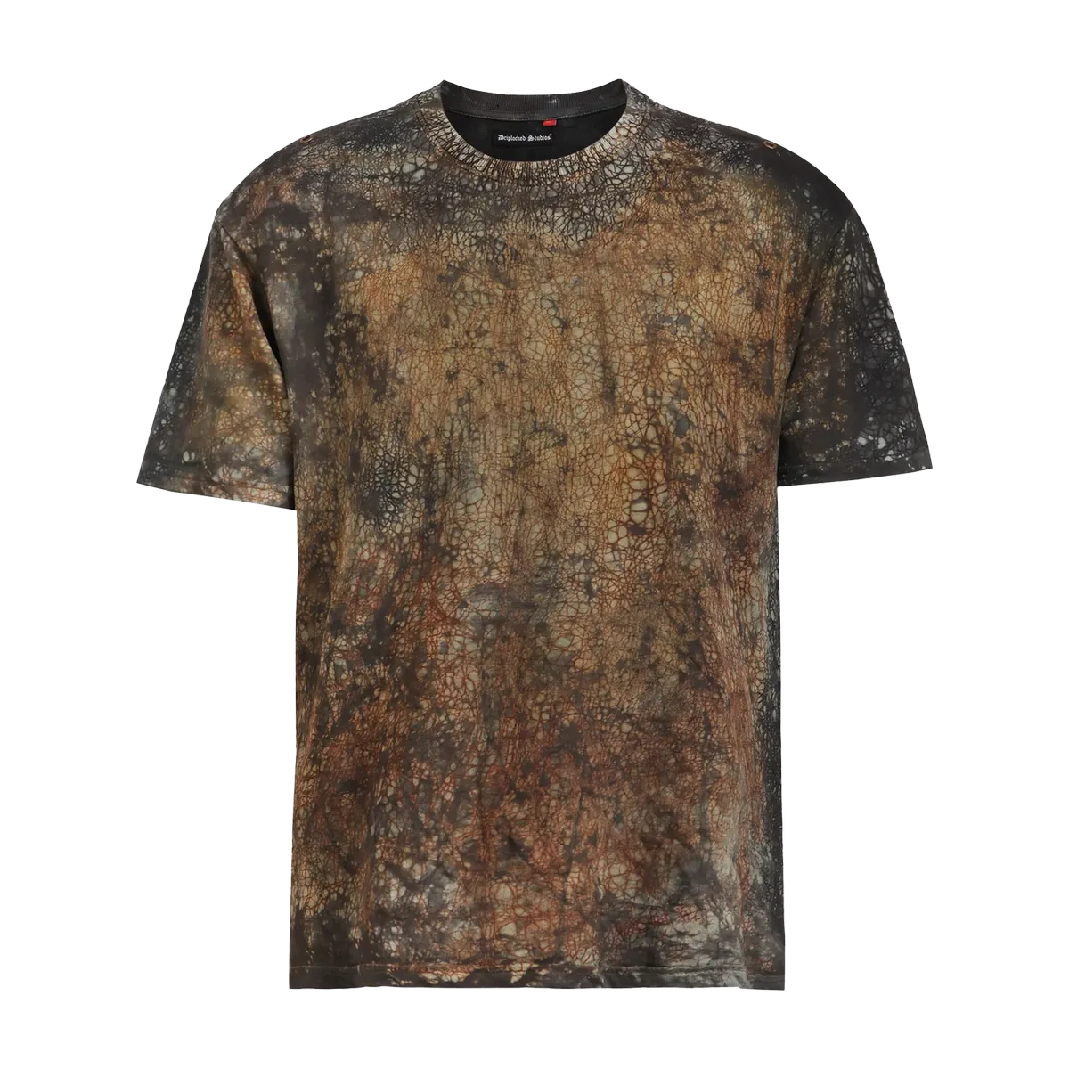 This piece has a life of its own. We start with a custom flour and dye-based mix, layering it onto the fabric and letting it soak up dye. As it dries, the cracks start forming, giving each piece a one-of-a-kind texture.